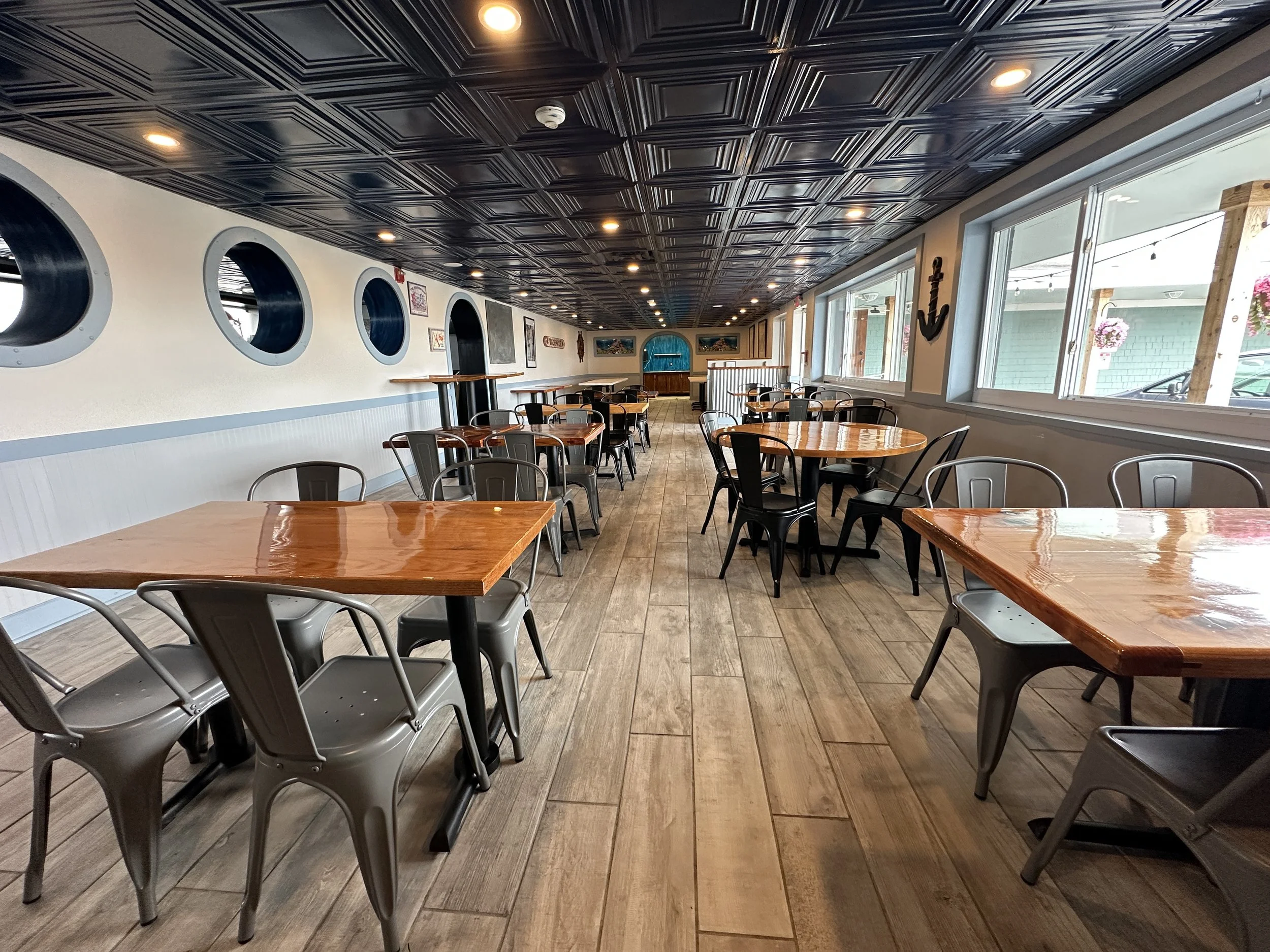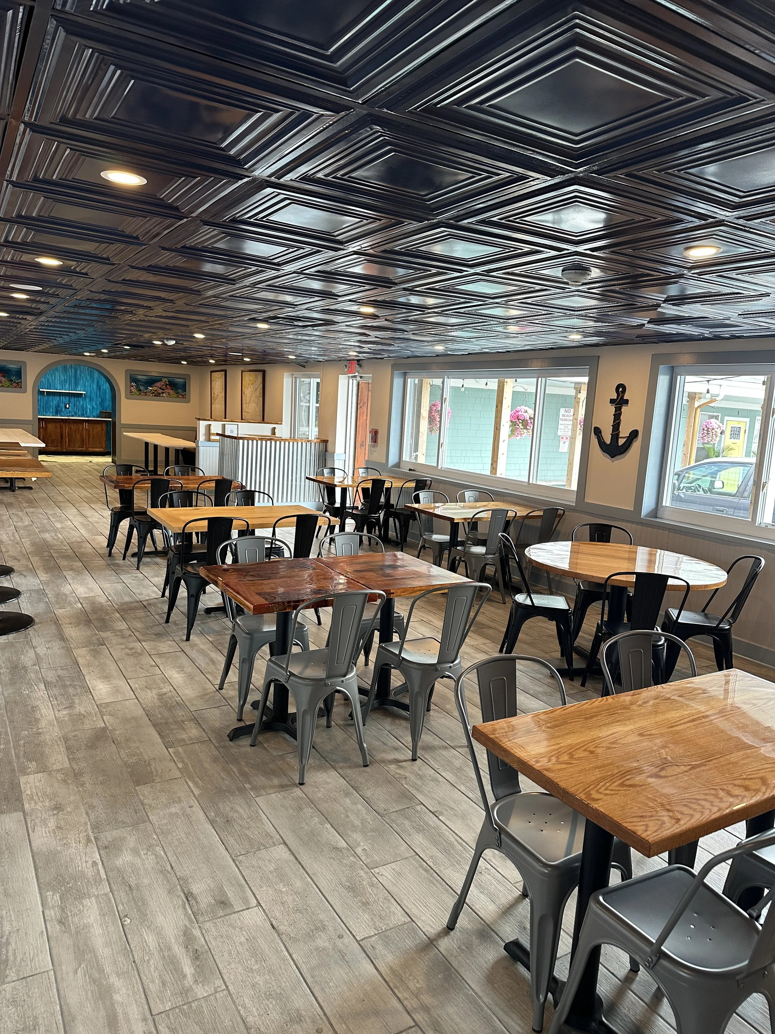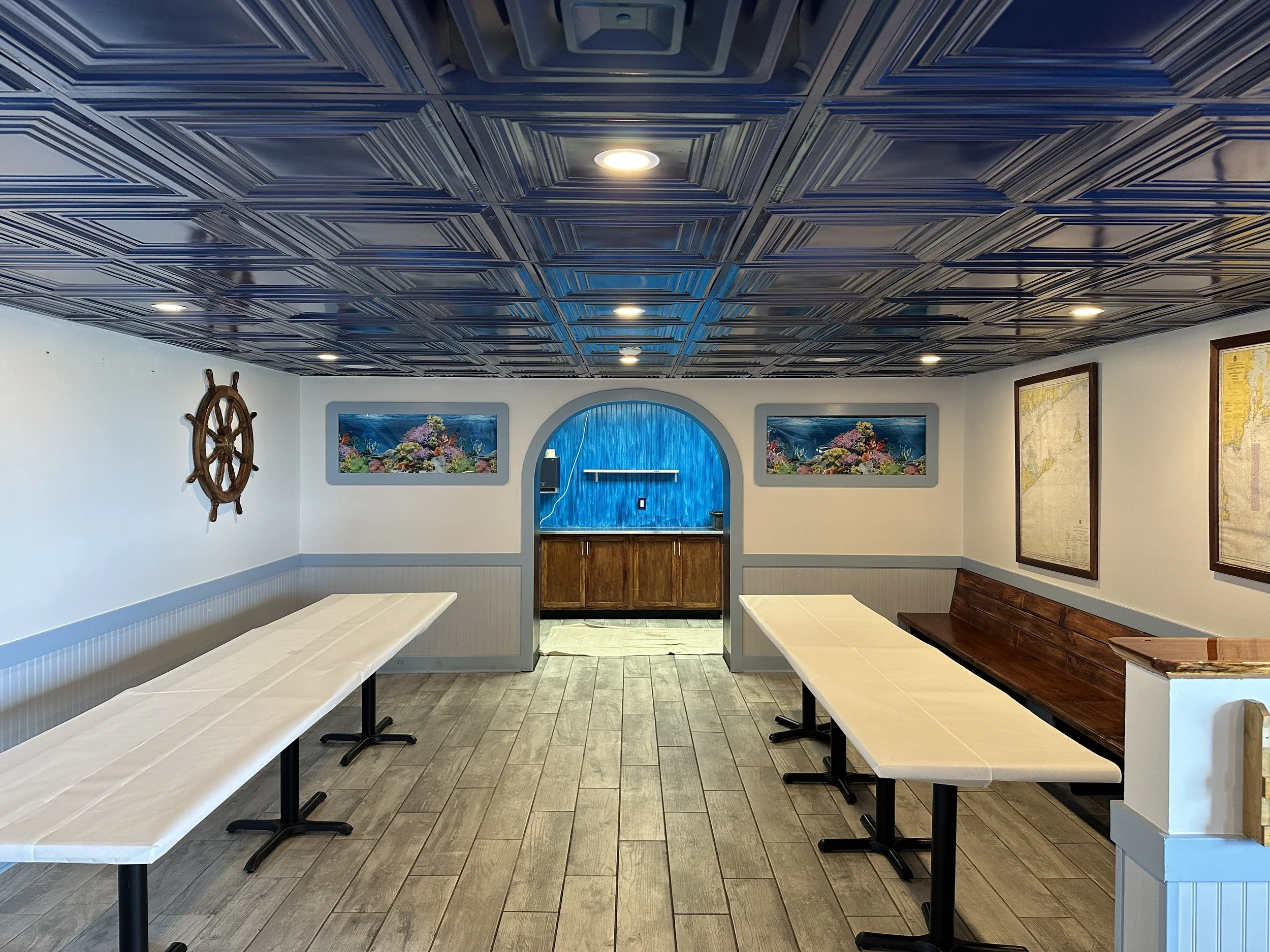 Host your next celebration just steps from Scarborough Beach in our inviting space for up to 100 guests. Enjoy a full bar, catering, and a cozy atmosphere open year-round, even through the winter.