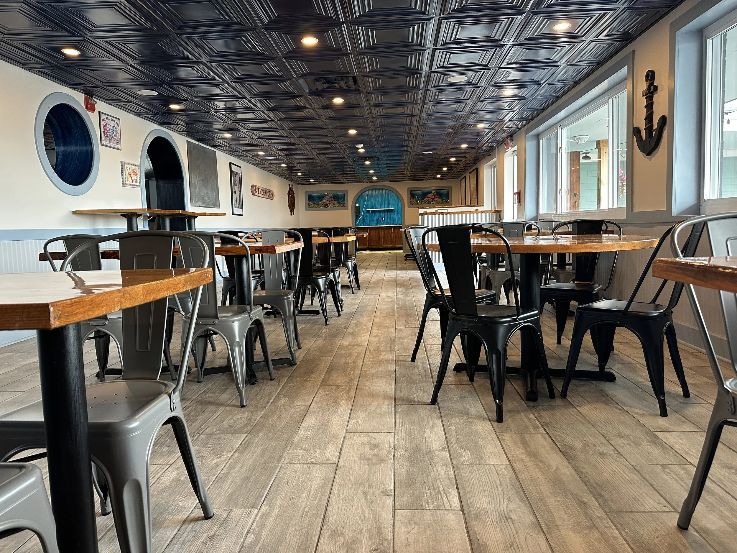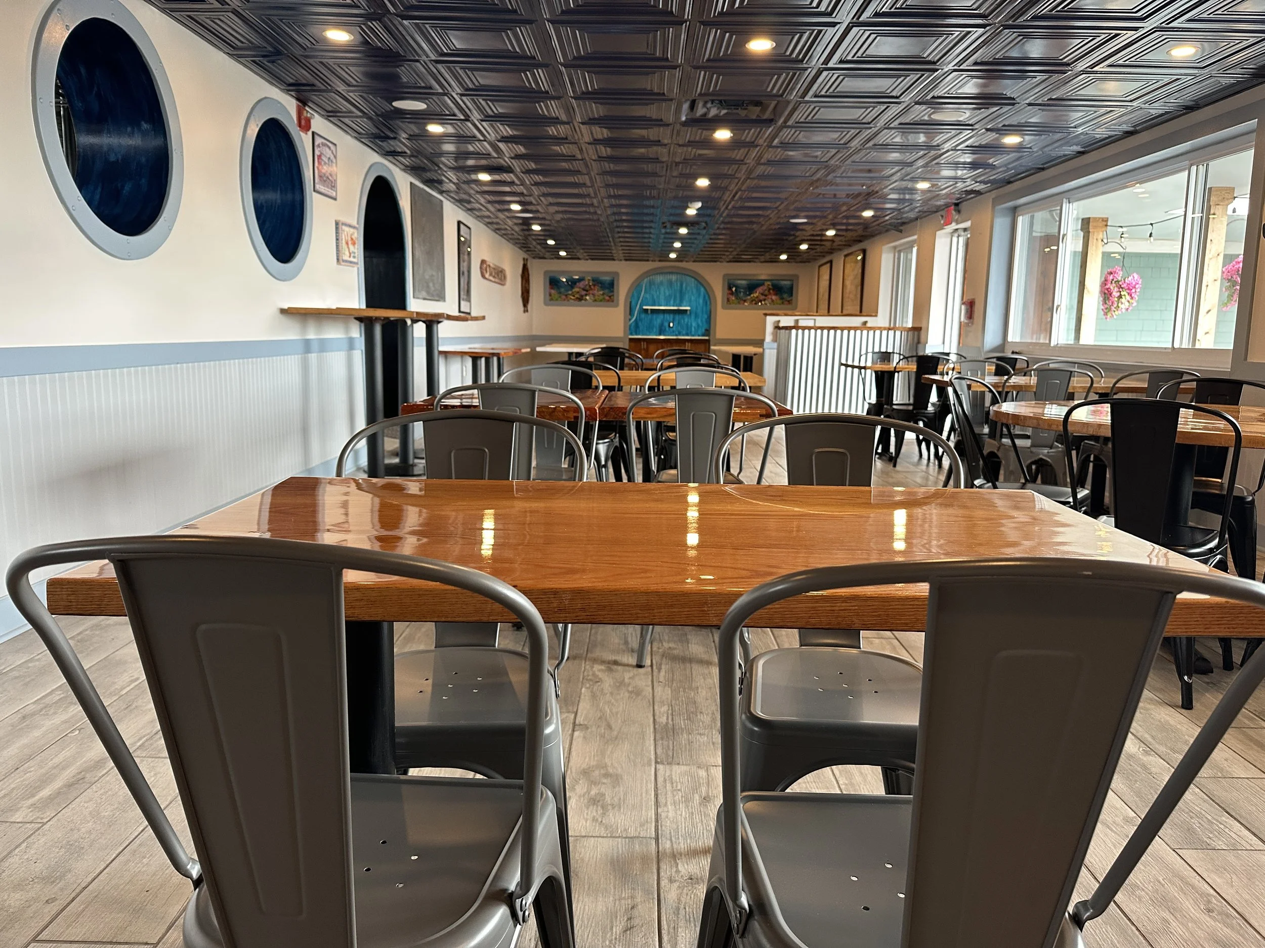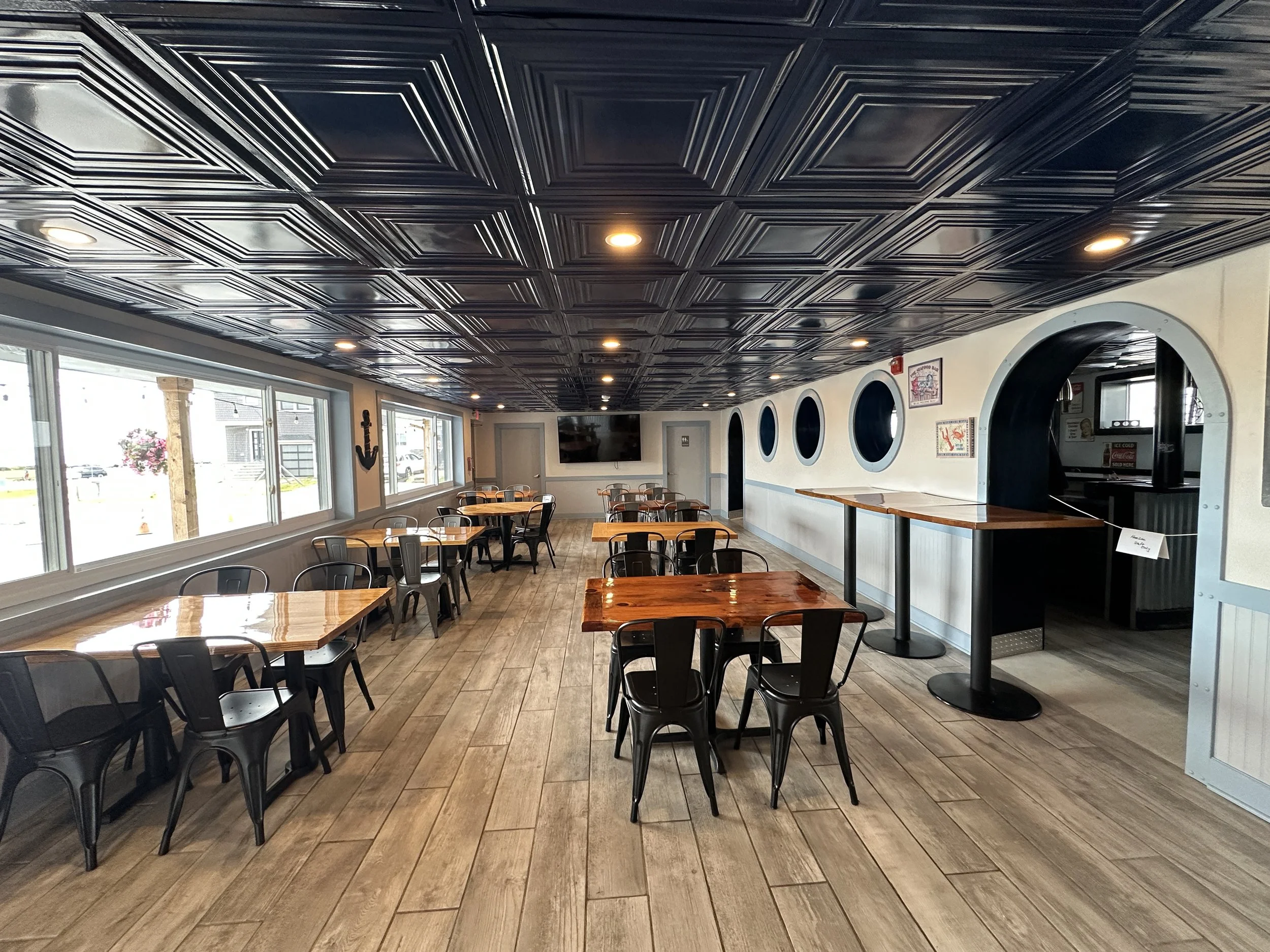 Host your next celebration just steps from Scarborough Beach in our inviting space for up to 100 guests. Enjoy a full bar, catering, and a cozy atmosphere open year-round, even through the winter.